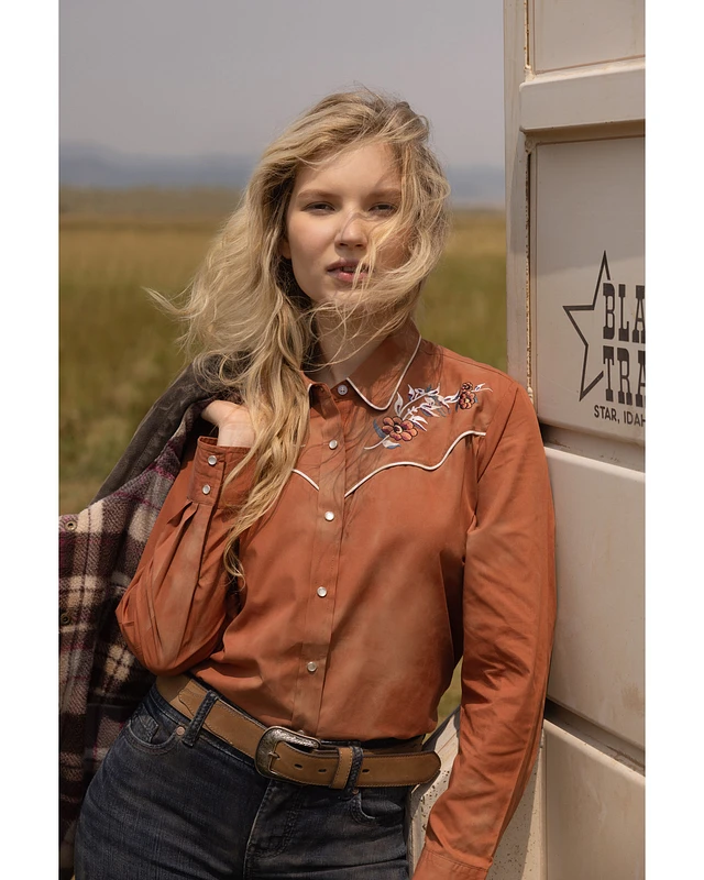 Ely Walker Women's Floral Embroidered Long Sleeve Snap Western Shirt