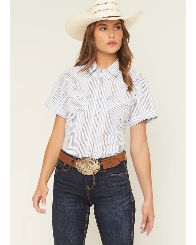 Ely Walker Women's Striped Short Sleeve Pearl Snap Western Shirt