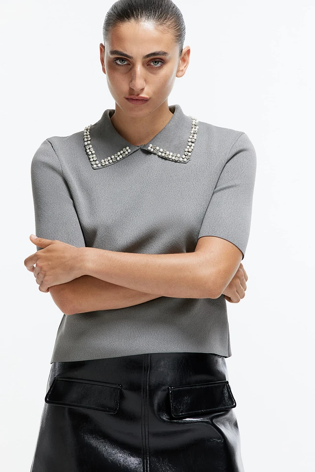 Embellished-Collar Knit Top