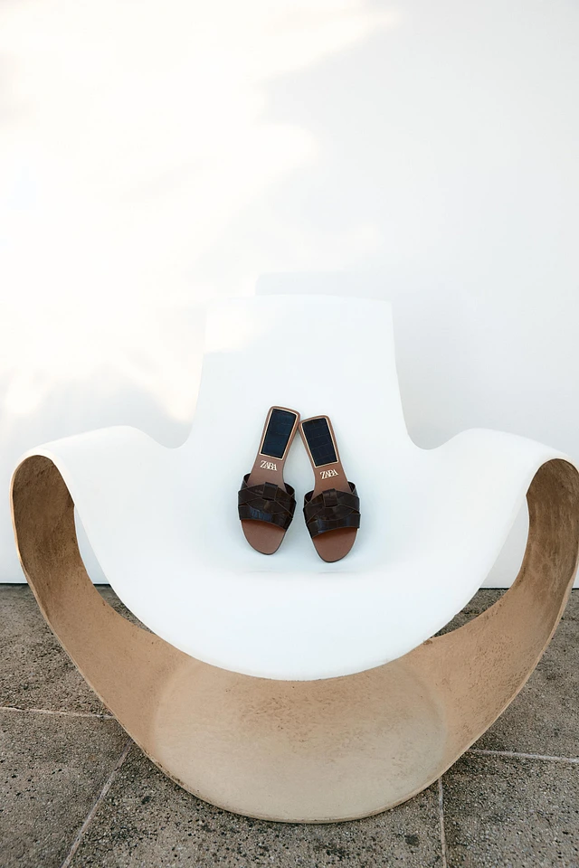 SPLIT LEATHER STRAPPY FLAT SANDALS