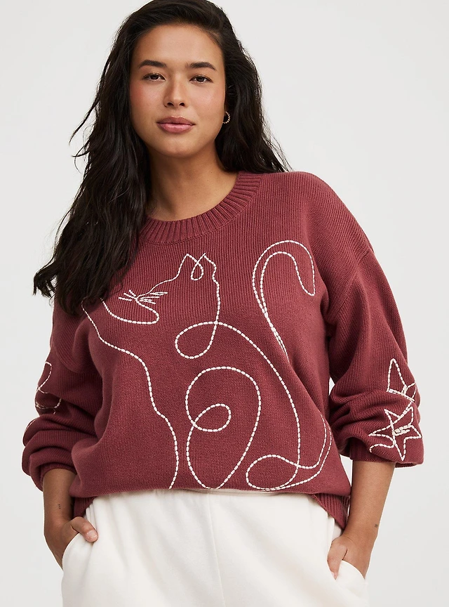 Embroidered Crew Pullover Sweater