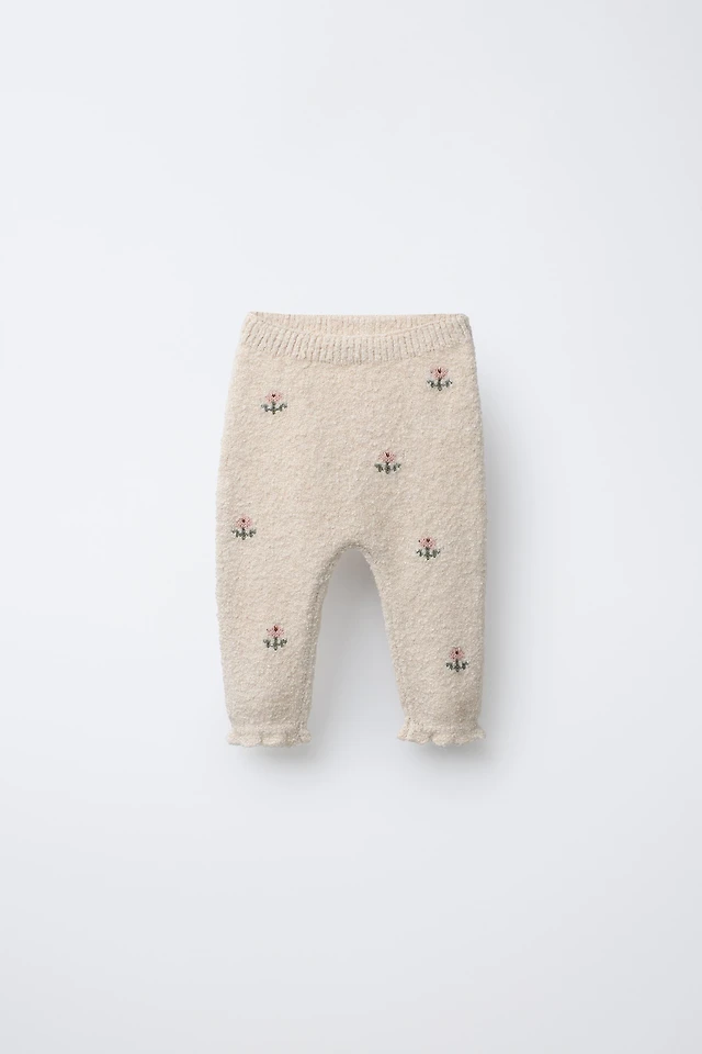 EMBROIDERED FLORAL KNIT PANTS