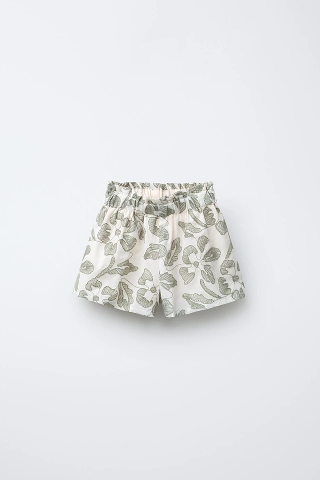 HIGH WAIST EMBROIDERED FLORAL BERMUDA SHORTS