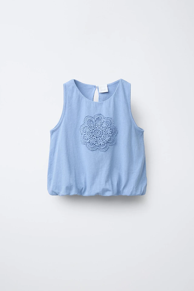 EMBROIDERED FLOWER BALLOON T-SHIRT