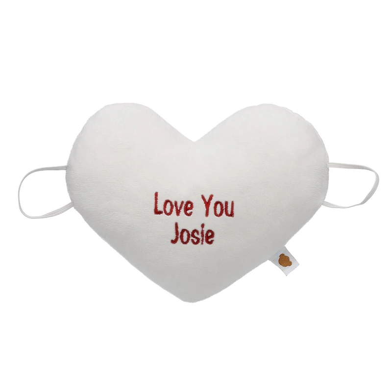 Give any gift a personalized touch when you add this custom heart wristie! This elegant white heart plush attaches to your furry friend's paws. Embroider the heart with names, dates, or a special message to make a custom gift! Please note: Embroidered items require 1 additional business day for processing. Embroidered items are nonrefundable and cannot be purchased unstuffed. Build-A-Bear reserves the right to refuse requests to embroider profanity; schools, sororities or fraternities; trademarked or licensed names; names of celebrities or professional sports players; or any content that we deem inappropriate, at our discretion.