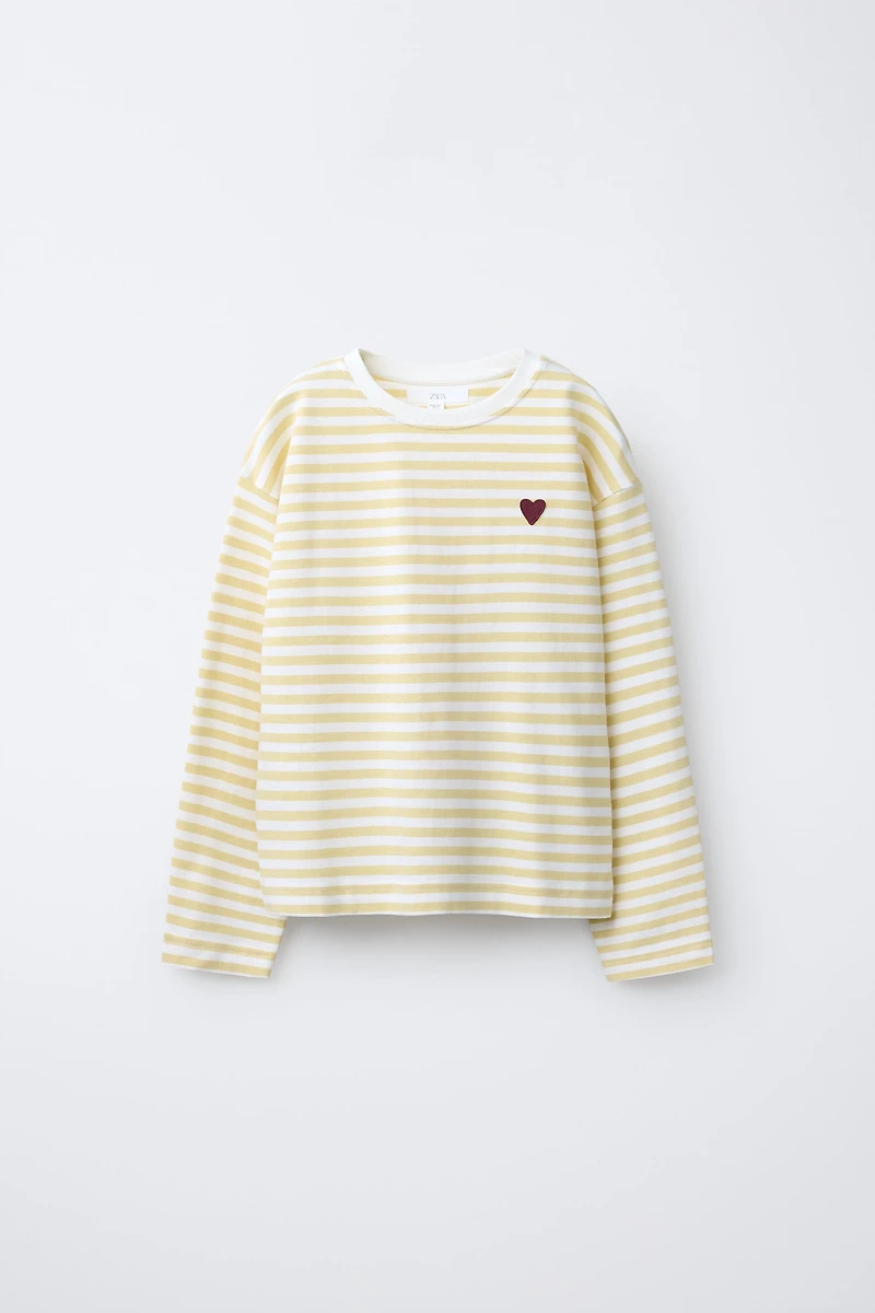 EMBROIDERED HEART STRIPED T-SHIRT