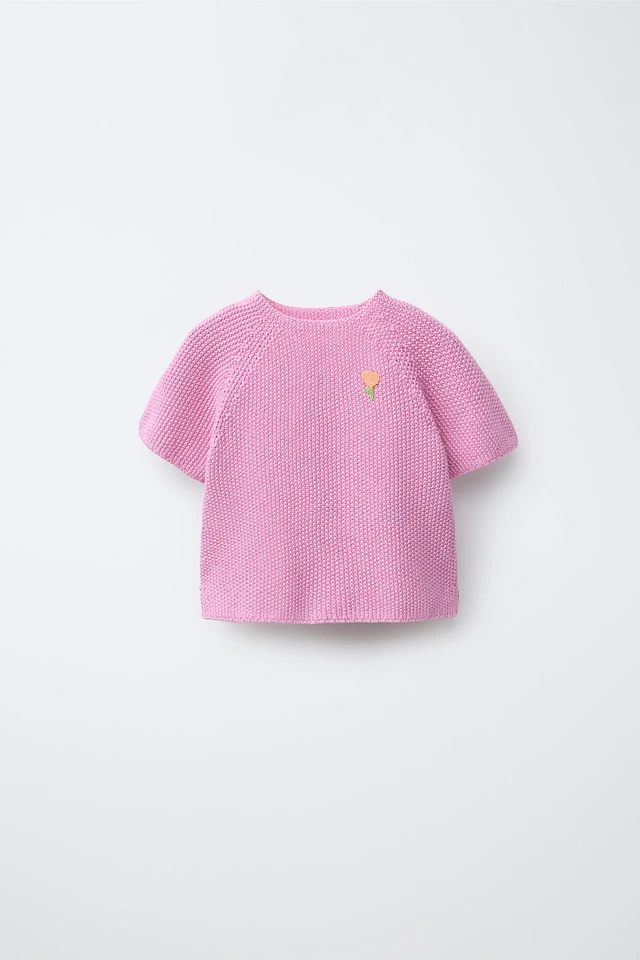 EMBROIDERED PATCH SHORT SLEEVE SWEATER