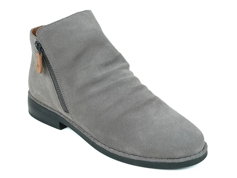 The Emma bootie from Gentle Souls by Kenneth Cole will become a staple in your ankle boot collection thanks to the versatile design. The suede upper adds a sleek finish to your look while the multi-layered comfort system utilizing PORON performance cushioning keeps you comfortable all day or night.