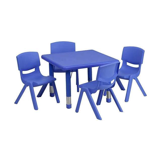 Emma+Oliver 24" Square Plastic Height Adjustable Activity Table Set With 4 Chairs