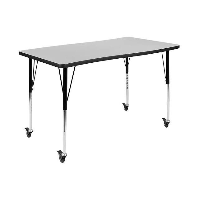Emma+Oliver Mobile 28"Wx47.5"L Rectangle Wave Flexible Collaborative Adjustable Activity Table