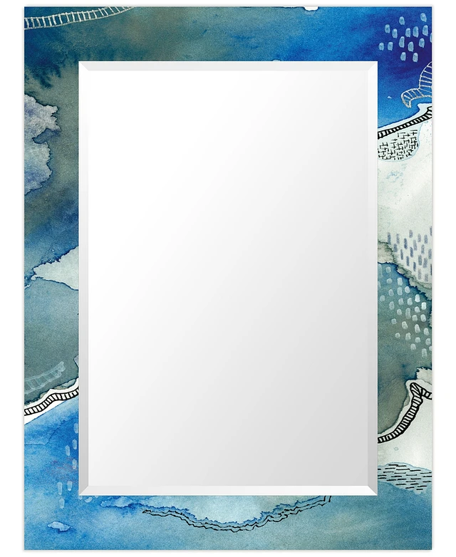 Empire Art Direct 'Subtle Blues' Rectangular On Free Floating Printed Tempered Art Glass Beveled Mirror, 40" x 30"