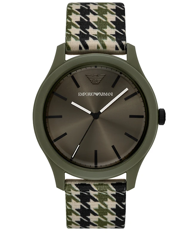 Emporio Armani Men's Green Tri-Tone Textile Strap Watch 45mm