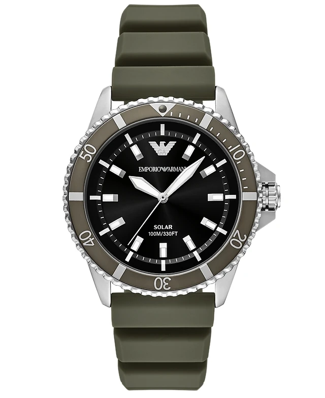 Emporio Armani Men's World Explorer Solar Three Hand Green Silicone Watch, 42mm
