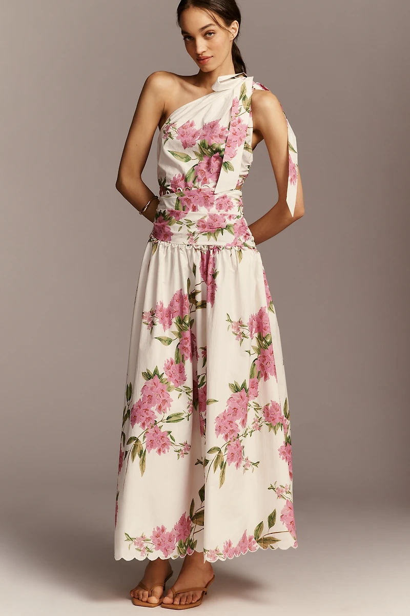 En Saison Esther Cotton One-Shoulder Drop-Waist Midi Dress
