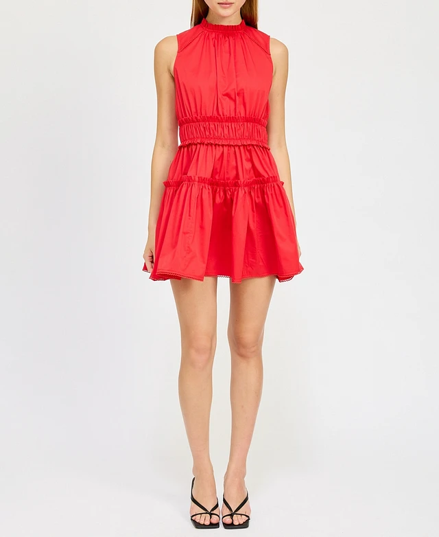 Modenaire Women's Pleated Contrast Collar Bow Tie Mini Dress