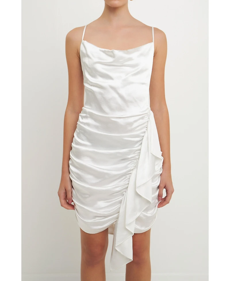 endless rose Women's Asymmetrical Waterfall Draped Satin Mini