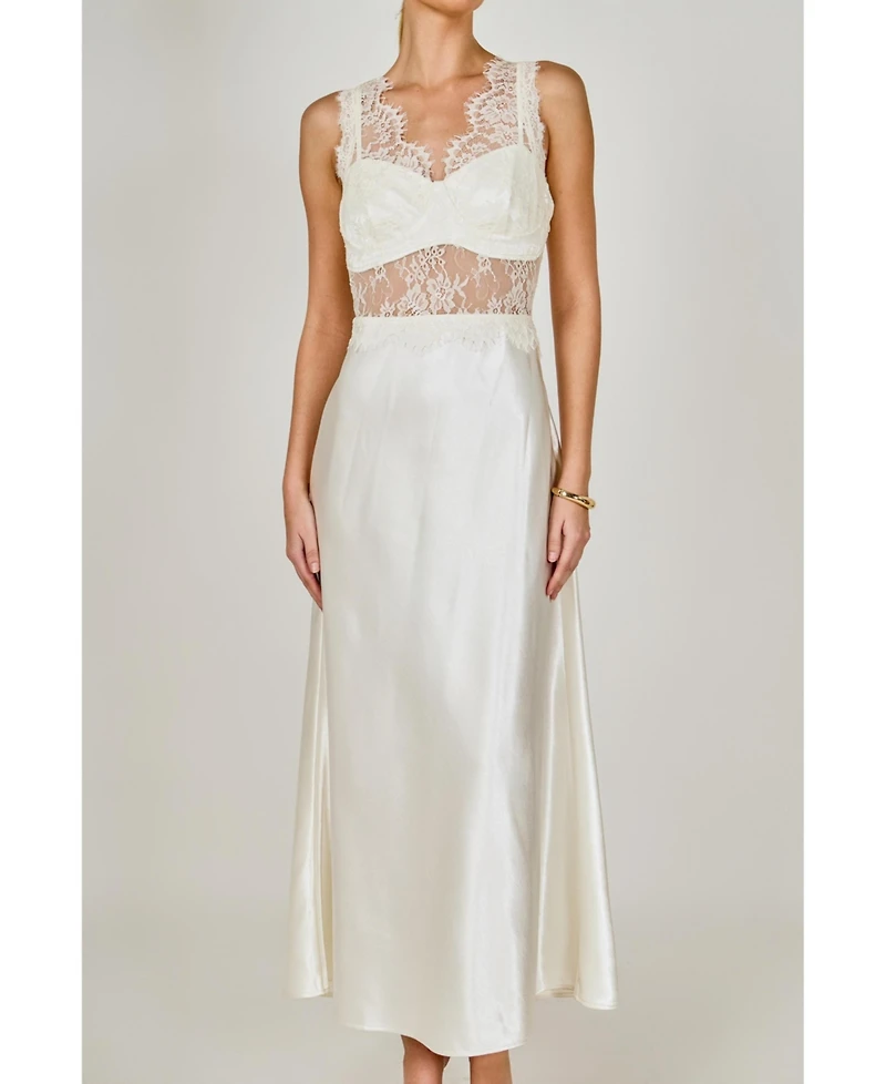 endless rose Women's Lace trim sleevesless midi dress