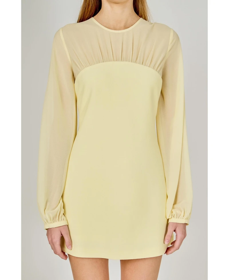 endless rose Women's Mixed Media Mini Dress with Puff Sleeves