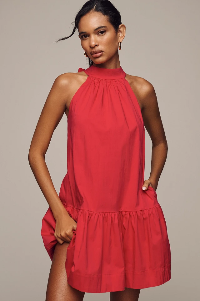 English Factory Halter Poplin Drop-Waist Mini Dress