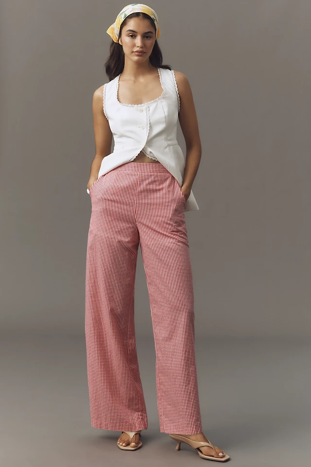 English Factory High-Rise Gingham Wide-Leg Pants