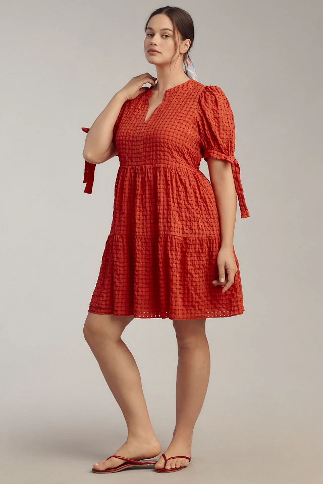English Factory Plus Puff-Sleeve V-Neck Tiered Mini Dress