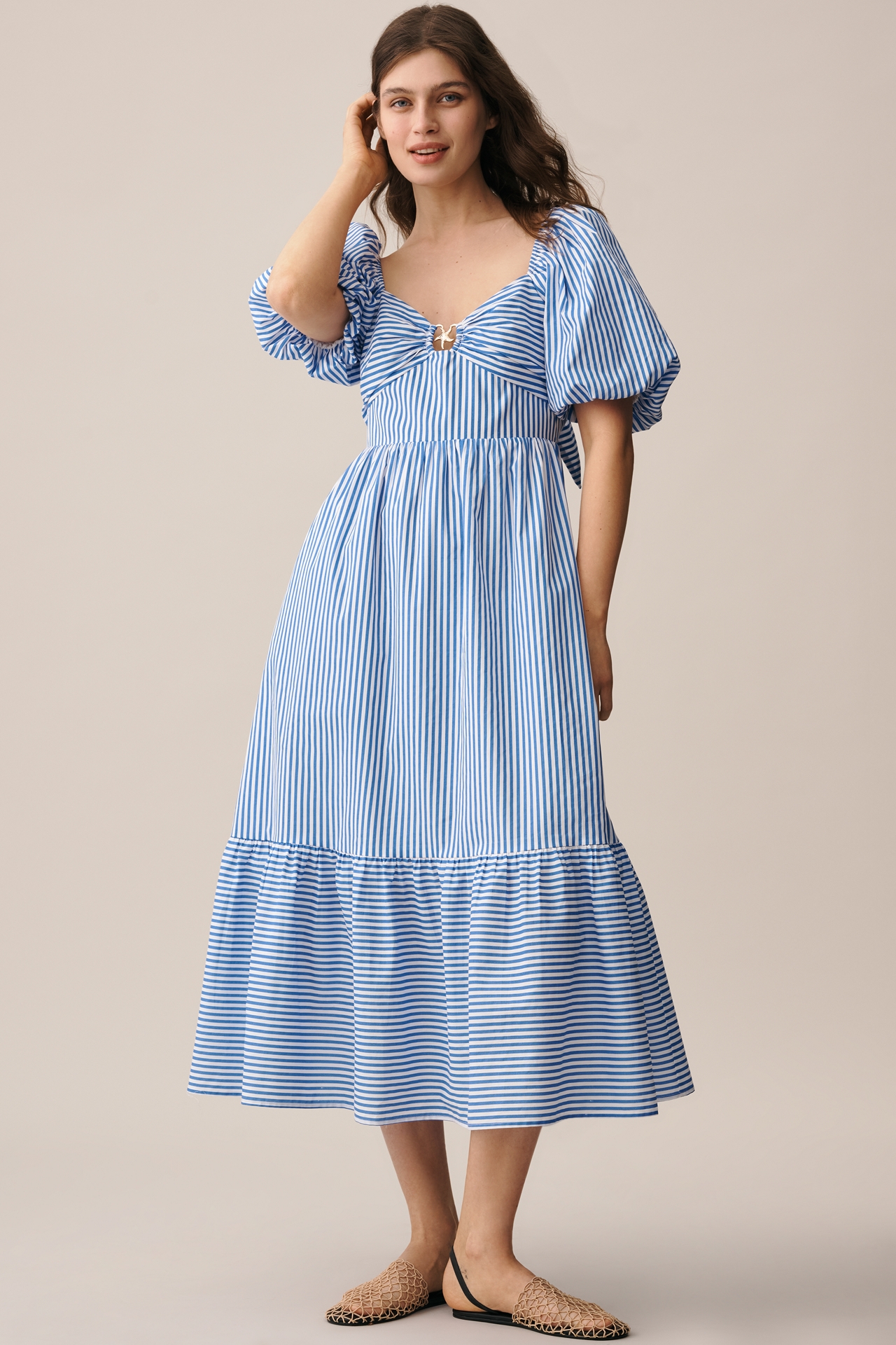 English Factory Puff-Sleeve Sweetheart A-Line Midi Dress
