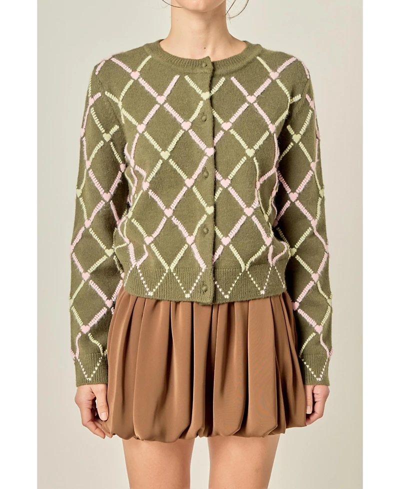English Factory Women's Diamond Heart Pattern Knit Cardigan