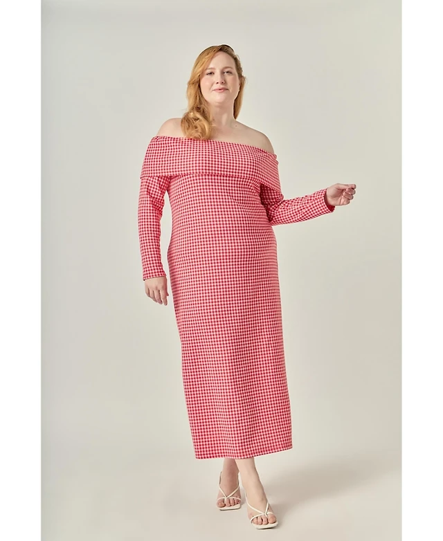 English Factory Women's Gingham Off The Shoulder Midi Dress