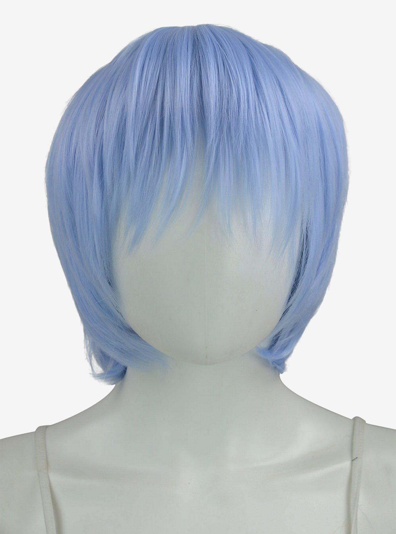 The Epic Cosplay Aether style Ice Blue layered short wig offers a versatile and easy to wear way of achieving a short and easy to manage hairstyle. This wig is perfect for both cosplay and daily wear without the commitment of cutting your own locks. The adjustable, breathable 23" cap makes this Ice Blue layered short wig capable of fitting both male and female head sizes comfortably. The Epic Cosplay Aether style is also available in a variety of different colors. A circular skintop at the crown of this Ice Blue layered short wig makes it easy to part and style in numberous ways. Bangs reaching 3.5" can be changed to face a variety of different directions, making almost any look possible. Altogether, this wig measures 12" in length and has short layers blended in for added texture. It comes with a naturally sleek look, but the short layers make it easy to spike this wig with the help of a little bit of product. The heat resistant fiber, capable of withstanding heat up to 410 degrees Fahrenheit (though we suggest not exceeding 350F, as long-term exposure can change the texture of the fiber) make it possible to take styling tools such as flat irons and blow dryers to this wig.