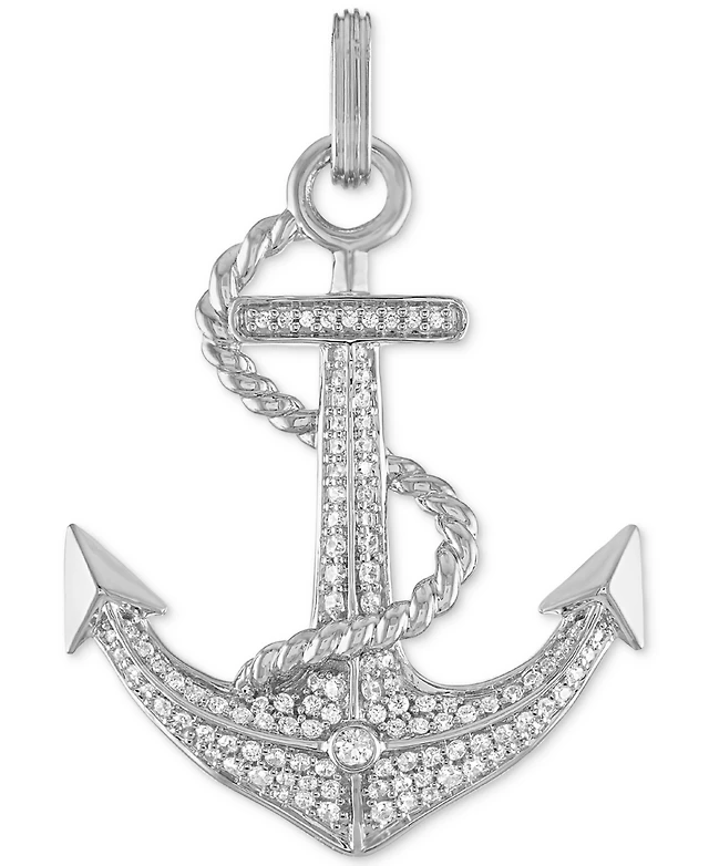 Esquire Men's Jewelry Cubic Zirconia Anchor Pendant in Sterling Silver, Created for Macy's