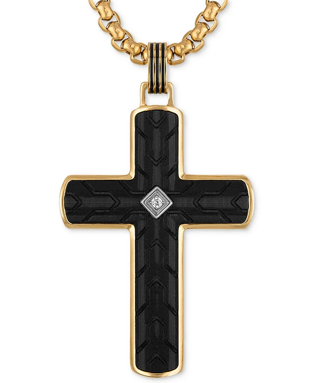 Esquire Men's Jewelry Diamond Accent Carbon Fiber Cross 22" Pendant Necklace in Stainless Steel & Black & Gold-Tone Ion-Plate, Exclusively at Macy's