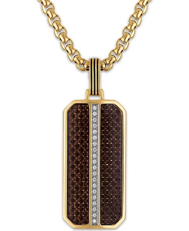 Esquire Men's Jewelry Diamond & Brown Carbon Fiber Cross Pendant Necklace (1/10 ct. t.w.) in Gold-Tone Ion-Plated Stainless Steel, 22"