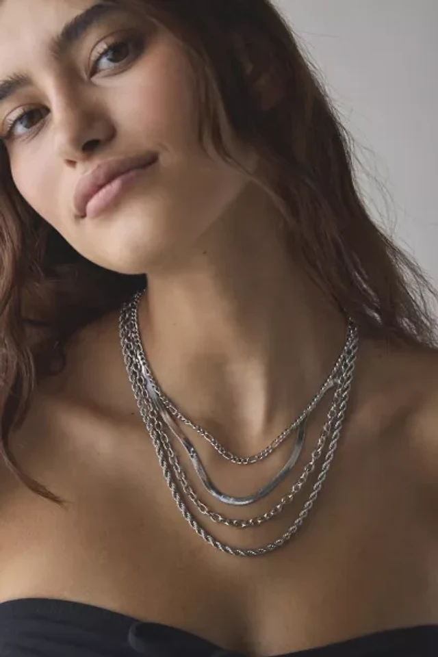 Snake Chain Stainless Steel Layered Necklace Set