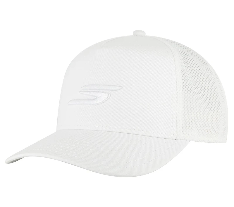 Top off your everyday looks with Skechers Essentials Trucker Hat. This breathable five-panel hat is made from 100% cotton and features a snapback closure, a high-depth fit, and a tonal Skechers Performance™ logo on the front.