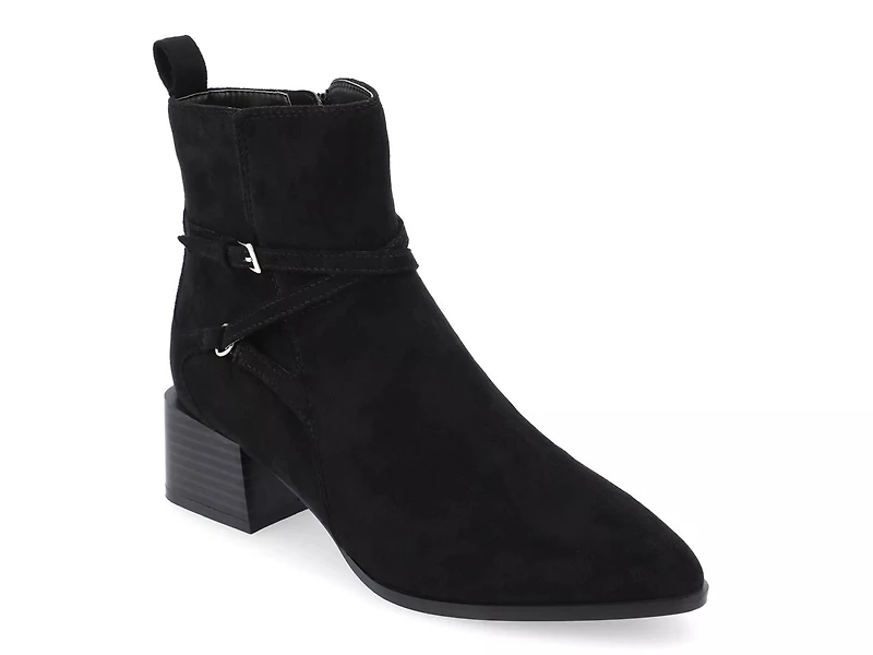 Epitome of modern elegance, the Estelle bootie from Journee Collection is a must-have in your wardrobe. Smooth vegan synthetic upper with strap details lend a captivating look to this block heel bootie enriched with a cushiony Journee Comfort System™ insole.