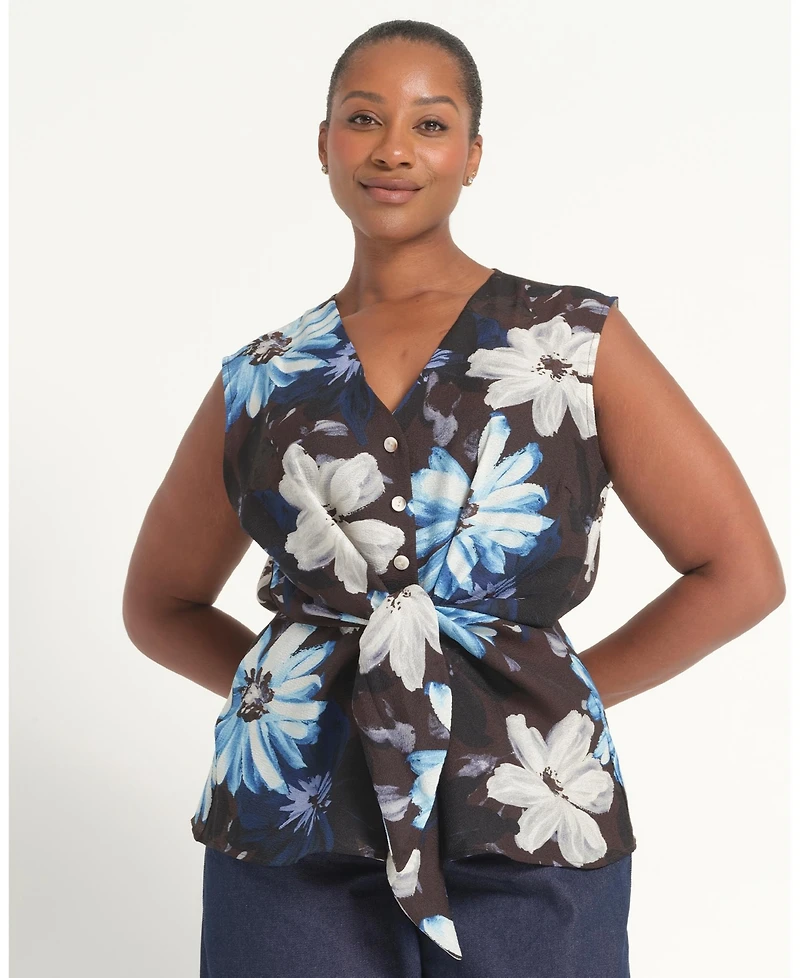 Estelle Plus Aveline Floral Tie-Front Sleeveless Top