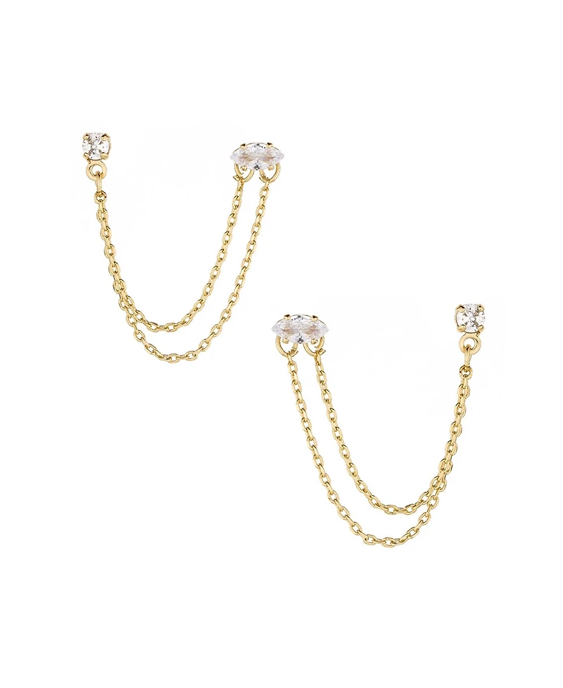 A trendy double post cubic zirconia and chain earring made for the girls with multiple piercings.