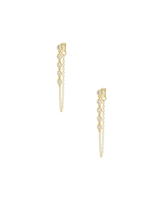 Ettika Barely There Chain Cubic Zirconia 18K Gold Plated Dangle Earrings
