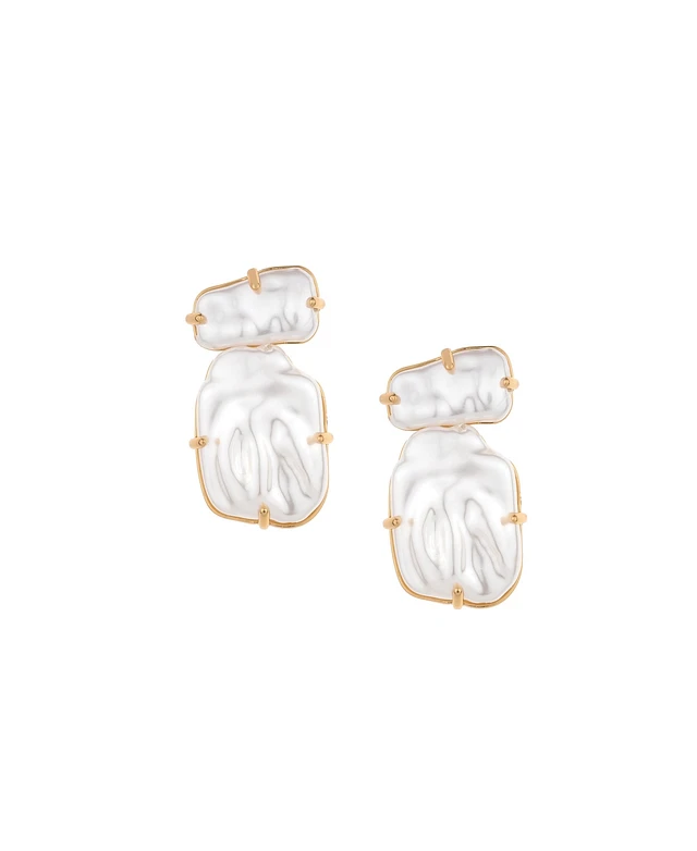 Ettika Double Imitation Pearl Nugget 18K Gold Plated Earrings