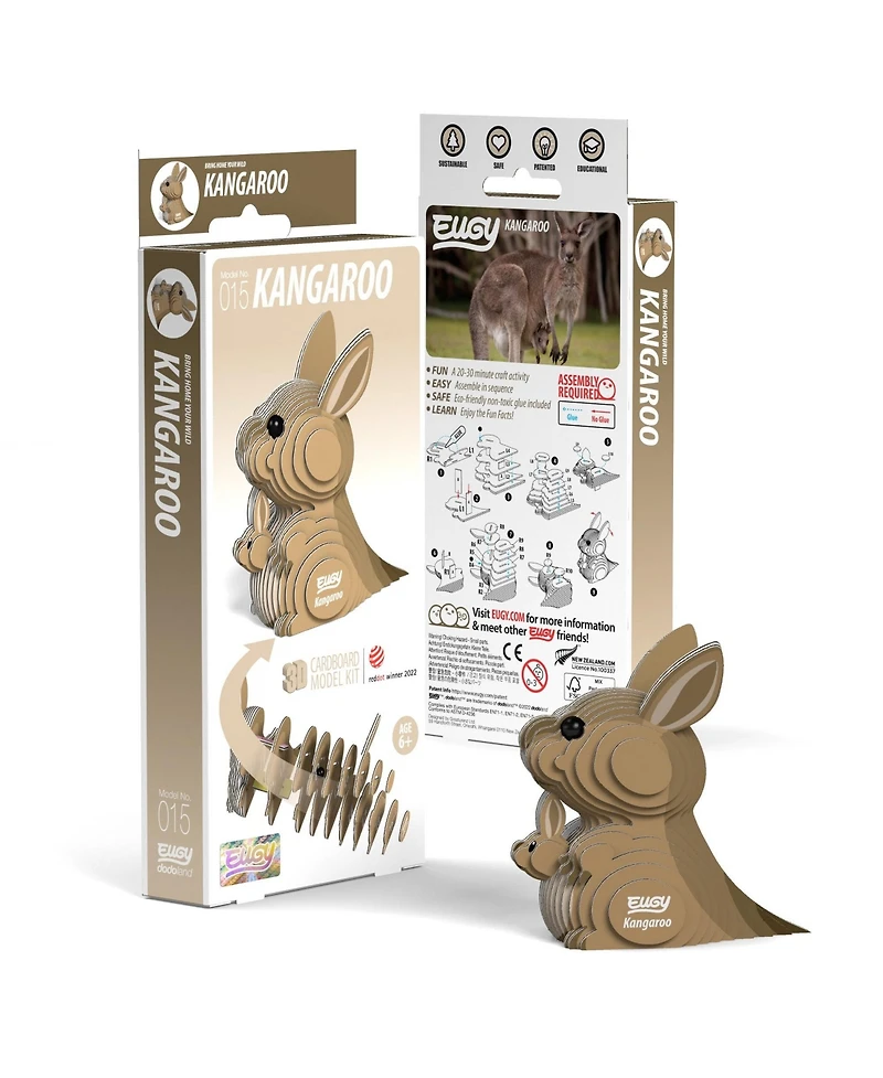 Eugy - a super-fun 3D puzzle that's eco-friendly and can be assembled in 10 to 20 minutes! Assemble this kooky Kangaroo puzzle and experience the magic of Eugy!