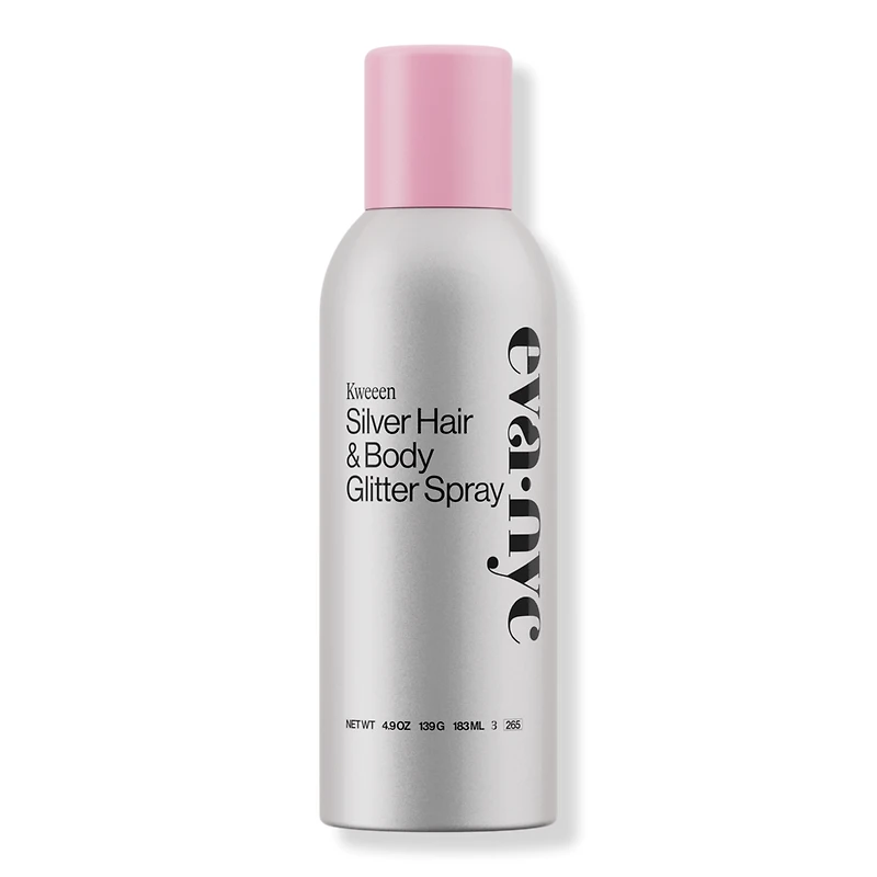 KWEEEN SLV HAIR & BODY GLT SPRY 4.9OZ. Benefits: Same original ultra-shimmery, non-sticky glitter. Adds sparkle and shine to hair and body. Safe for color-treated hair. Made with sustainable packaging: Aluminum can made with 25% PCR (post-consumer recycled) aluminum and is curbside recyclable. Plastic cap made with HDPE material and is recyclable via TerraCycle.. Packaging may vary. Key Ingredients: Argan Oil contains high levels of essential fatty acids, powerful antioxidants and vitamins A, C, and E.. Plant Protein hydrates and smooths damage for healthy-looking hair. Reduces the appearance of breakage, making brittle hair feel silky smooth.. Formulated Without: Sulfates, Parabens, Phthalates, SLES, MIT/MCIT, Mineral Oil, Nanoparticles, Triclosan, Triclocarban, BHT, BHA, Oxybenzone, Benzophenone, Talc, Coal Tar, Petrolatum, Formaldehyde, Lead, Hydroquinone, and Toluene..
