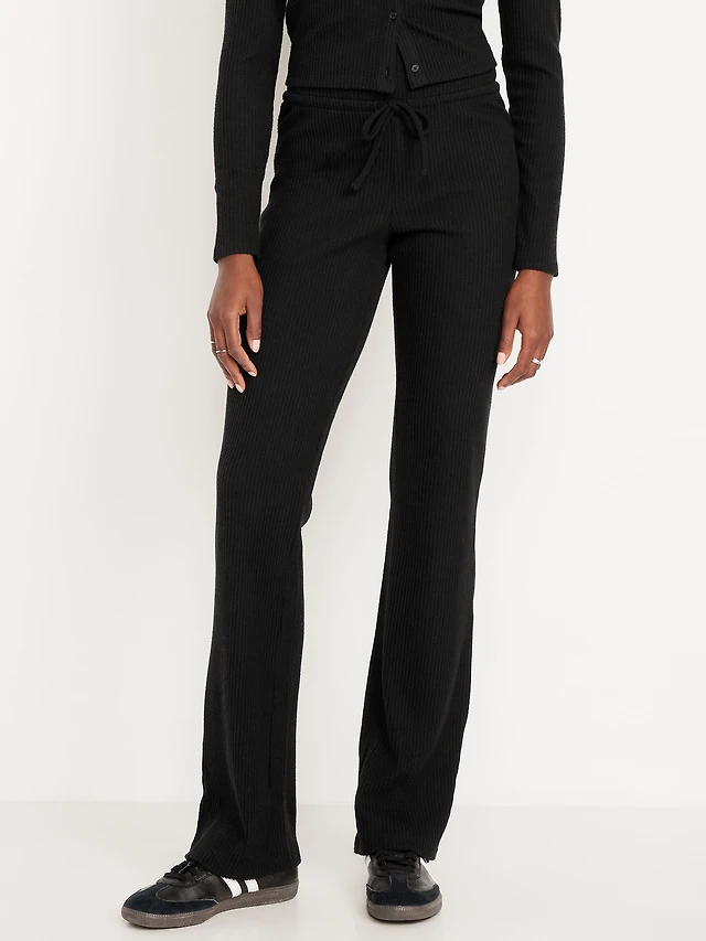 High-Waisted Cozy Waffle Flare Pants