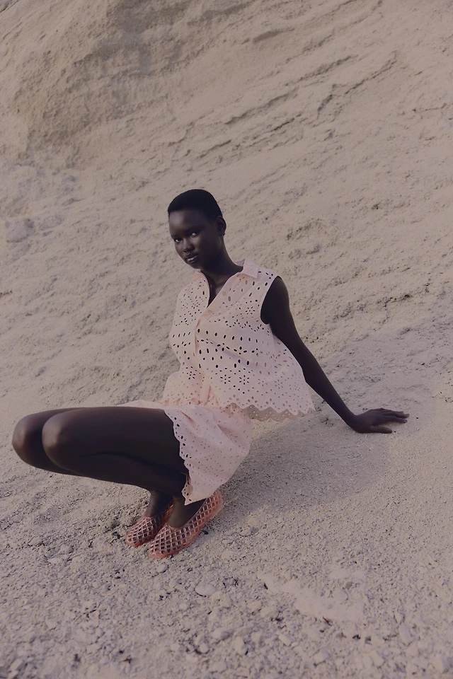 Eyelet-Embroidered Dress with Tie Shoulder Straps