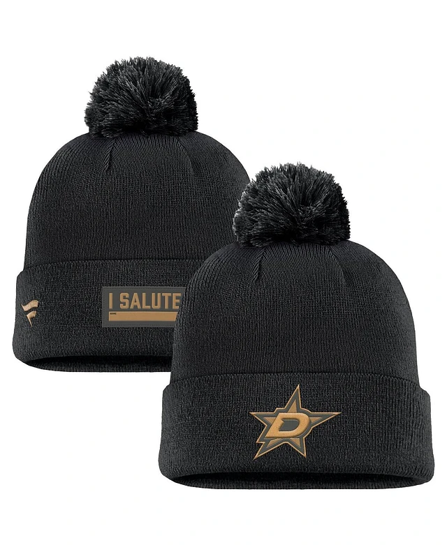 Fanatics Men's Black Dallas Stars Authentic Pro Military Appreciation Cuffed Knit Hat with Pom
