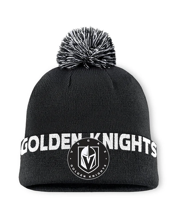 Fanatics Men's Black Vegas Golden Knights Fundamental High Stick Cuffed Knit Hat with Pom