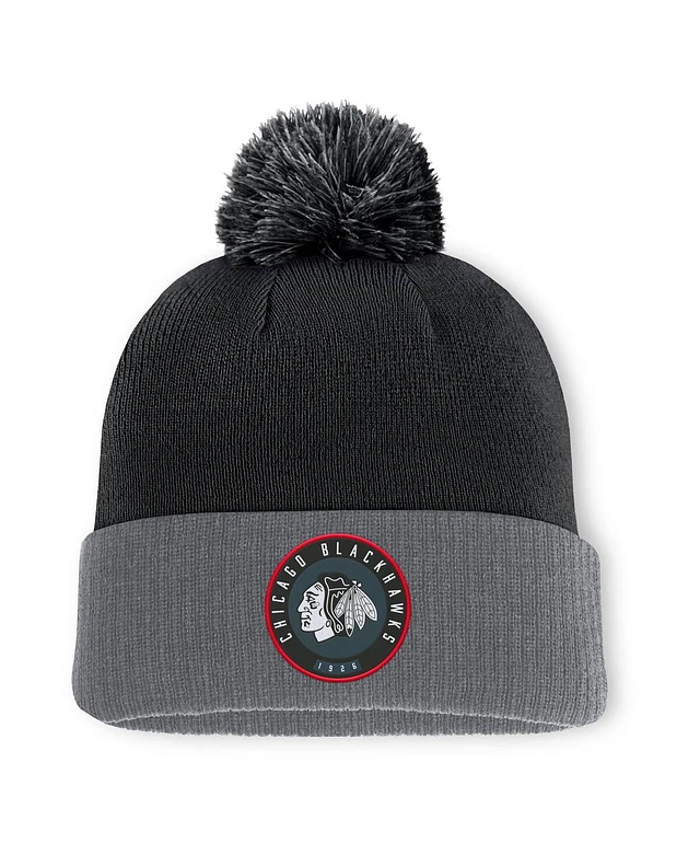 Fanatics Men's Black/Charcoal Chicago Blackhawks Cuffed Knit Hat with Pom