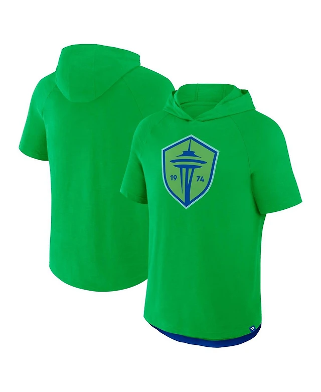 Fanatics Men's Rave Green Seattle Sounders Fc Hat Trick Stadium Slub Raglan Short Sleeve Pullover Hoodie T-Shirt