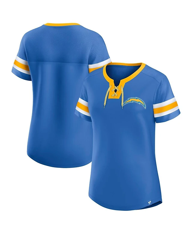 Fanatics Women's Powder Blue Los Angeles Chargers Redzone Draw Play Athena Lace-Up T-Shirt