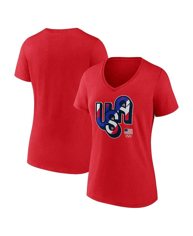 Fanatics Women's Red Team Usa Painting Paris 2024 Olympics V-Neck T-Shirt