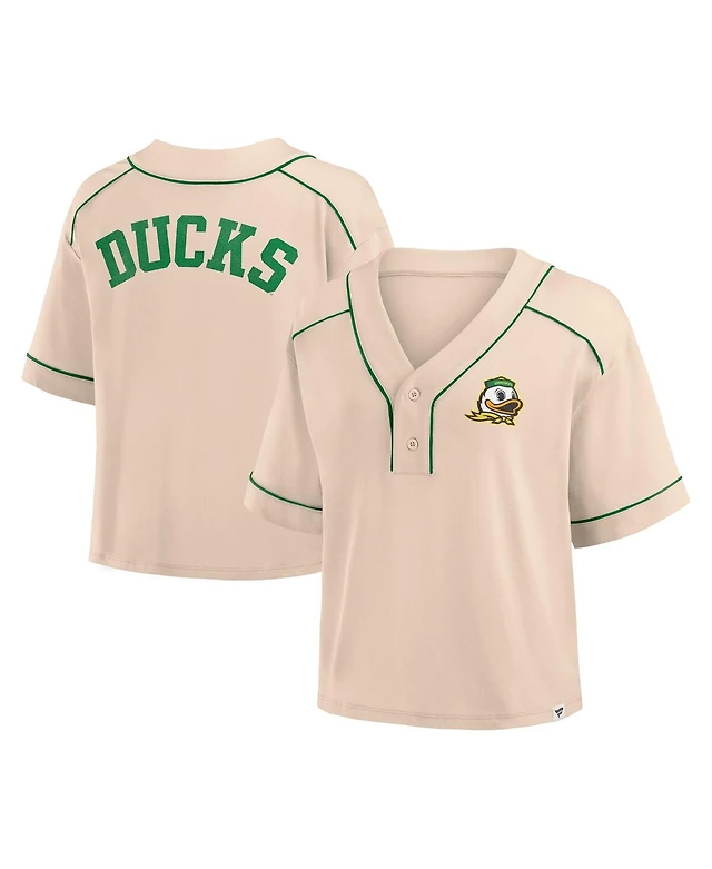 Fanatics Women's Tan Oregon Ducks Oversized Dominant Force Cropped V-Neck T-Shirt